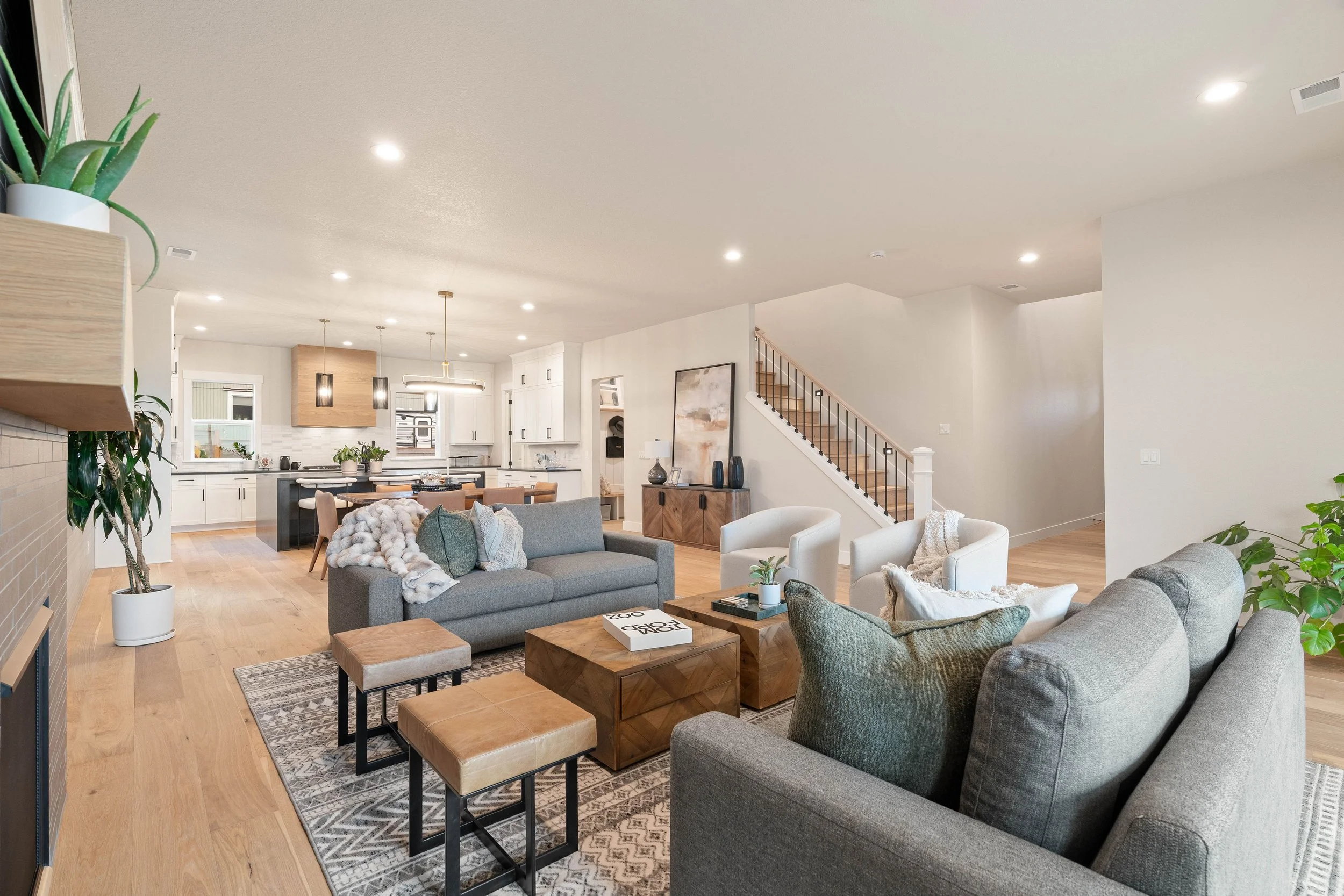 The Aspen floor plan offers an exceptional blend of modern design and functional elegance, thoughtfully crafted to enhance both comfort and style. Spanning 3,444 square feet, this two-story home features 5 bedrooms, 4 bathrooms, a 2-car garage, and a covered patio, making it ideal for families seeking both space and sophistication. As you enter, the inviting foyer sets the tone, leading to an open-concept main level designed for seamless living and entertaining. The heart of the home is the expansive great room, anchored by large windows that flood the space with natural light. Adjacent to the great room, the casual dining area and gourmet kitchen flow effortlessly together, creating the perfect setting for family meals or hosting guests. The kitchen is a chef’s dream, boasting a spacious island, walk-in pantry, and high-end finishes. A covered patio extends the living space outdoors, offering an ideal spot for relaxation or al fresco dining. A main-level bedroom with a full bathroom provides flexibility for guests, multi-generational living, or can be utilized as a home office space.