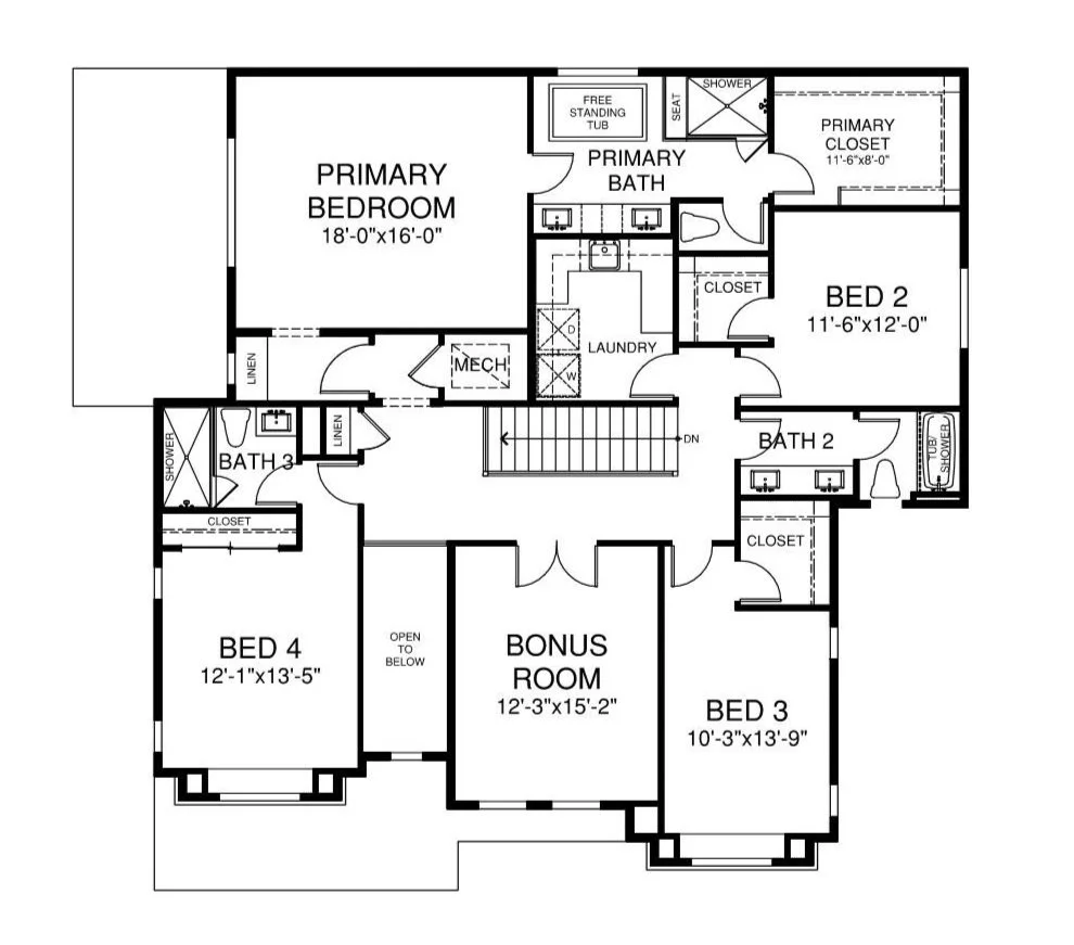 The second floor serves as a private retreat, featuring 4 additional bedrooms and a versatile bonus room. The primary suite is a luxurious sanctuary, complete with a spa-like bathroom that includes a freestanding tub, dual vanities, and an expansive walk-in closet. Secondary bedrooms are generously sized, providing comfort and privacy for family members. The upper-level laundry room adds convenience, while the bonus room offers endless possibilities for a playroom, media room, or additional lounge area.