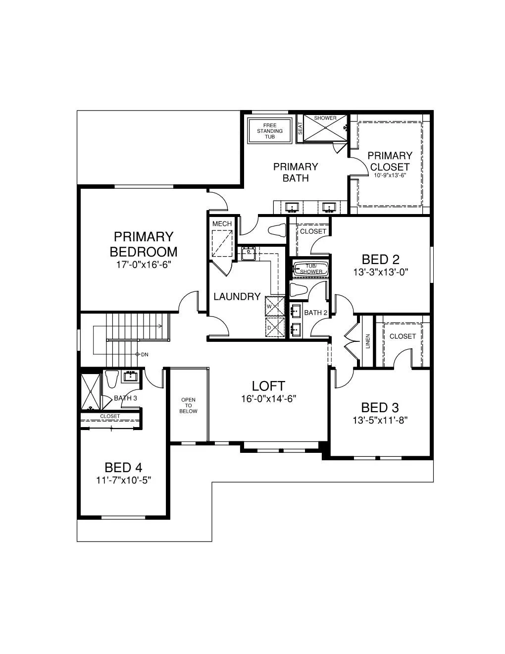 Upstairs, the primary suite offers a true retreat, featuring a spacious bedroom and a spa-inspired ensuite bath with a soaking tub, walk-in shower, and dual vanities. Three additional bedrooms and two full bathrooms provide room and privacy for family or guests. A central loft adds versatile living space, perfect for a playroom, lounge, or media area, and the dedicated laundry room adds everyday convenience.