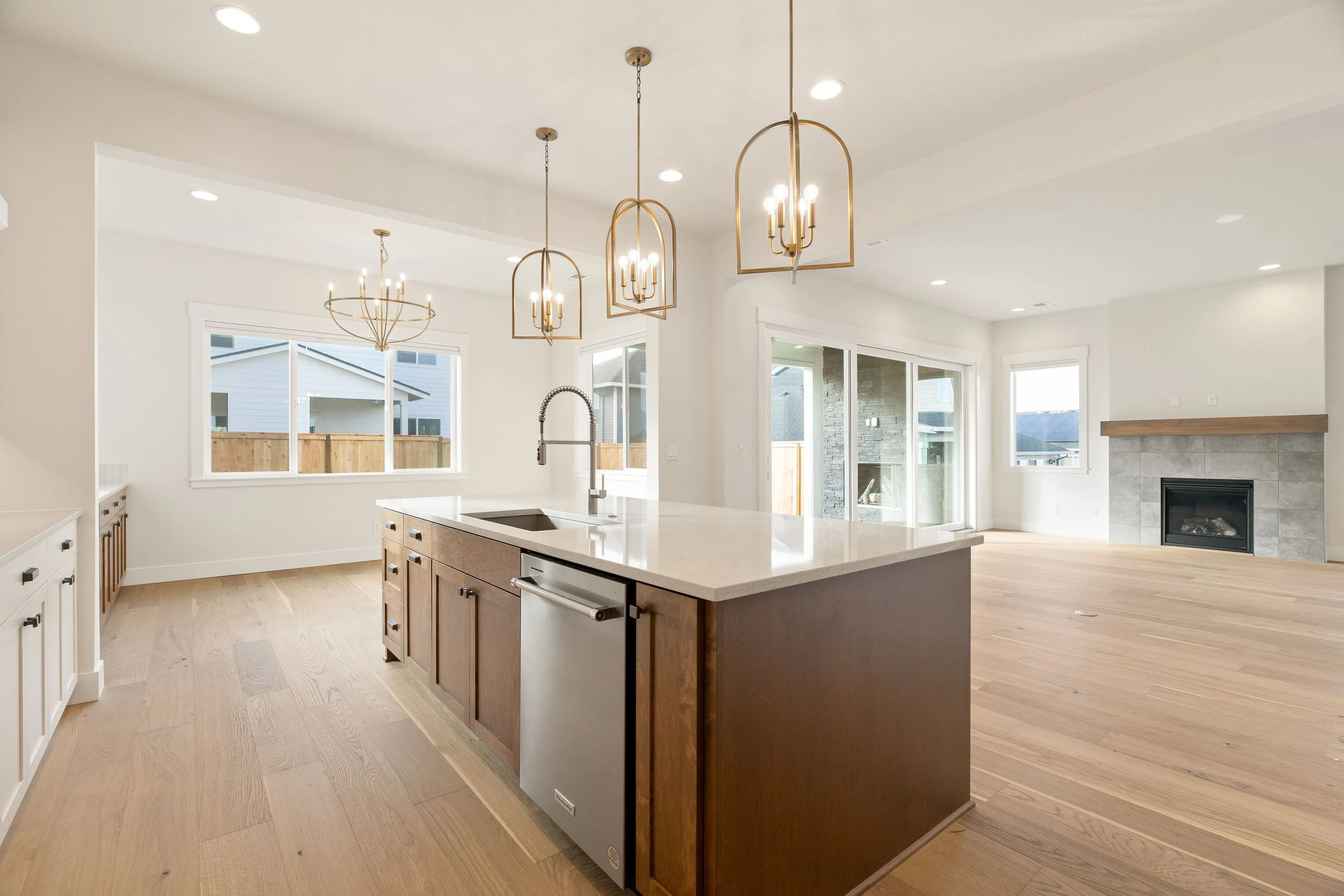 Introducing the Cottonwood floor plan, a stunning floor plan meticulously crafted for luxury and functionality. Upon entering through the grand foyer, you're greeted by soaring 19-foot ceilings that set a majestic tone throughout the home. The main floor features a serene primary bedroom retreat complete with an opulent attached bath, ensuring comfort and relaxation at your fingertips. Adjacent to the entrance, a versatile office space with a nearby full bath offers flexibility for work or guest accommodations. The expansive family room, adorned with its lofty ceilings, seamlessly connects from the entry, while the adjoining formal dining room and spacious, well-appointed kitchen create an ideal setting for hosting guests. Accessible from both the family room and kitchen, a sprawling outdoor living area beckons for gatherings and leisure.