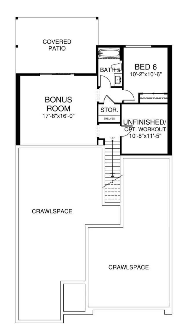 The lower level adds incredible versatility to The Maple’s design. It features a bonus room opening to a covered patio, a sixth bedroom with an adjacent full bath, a storage area, and an optional unfinished workout room that offers endless possibilities for customization. Every detail in The Maple floor plan is carefully curated to create a home that is as beautiful as it is livable, providing the perfect backdrop for both grand entertaining and everyday comfort.
