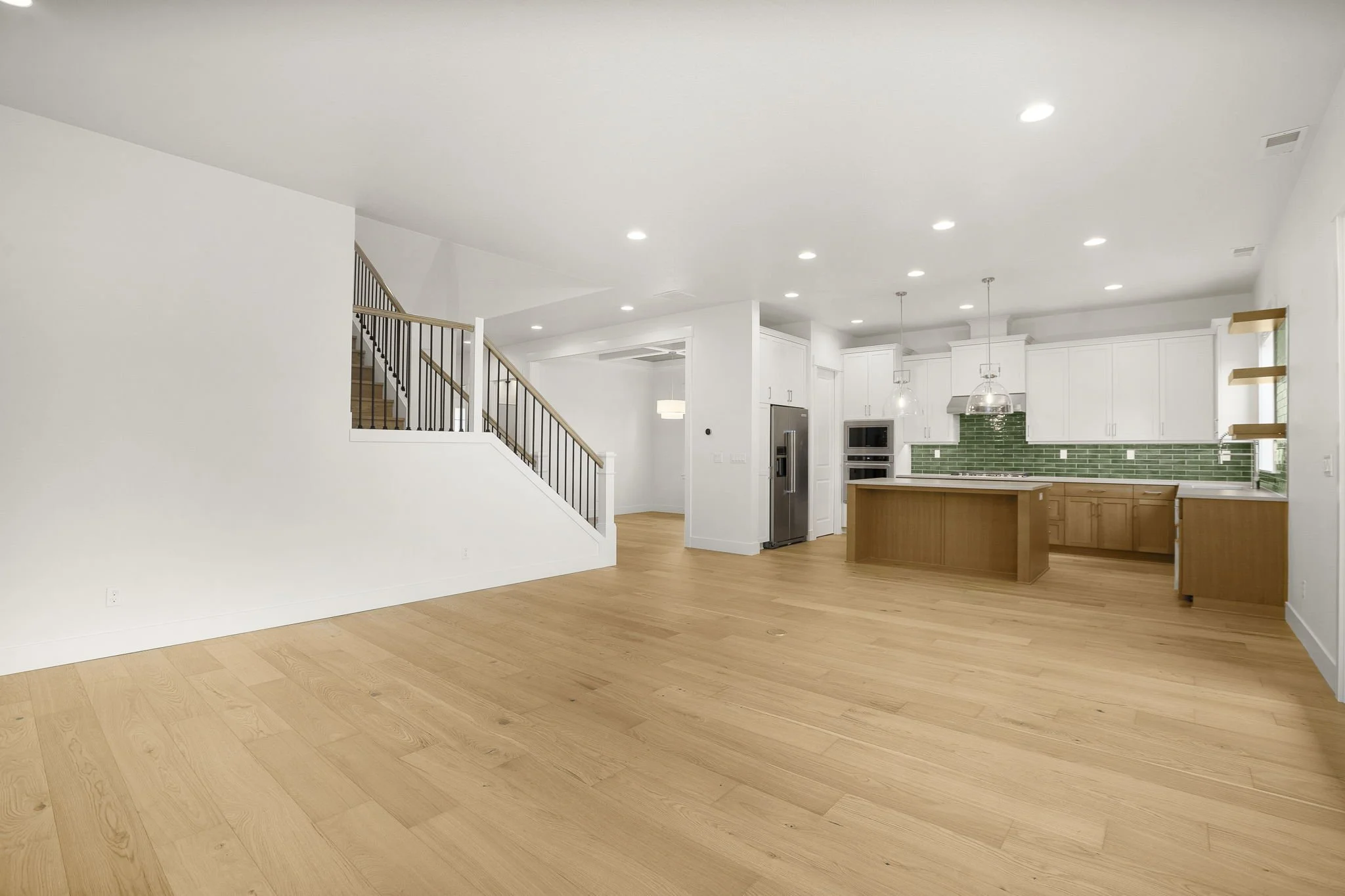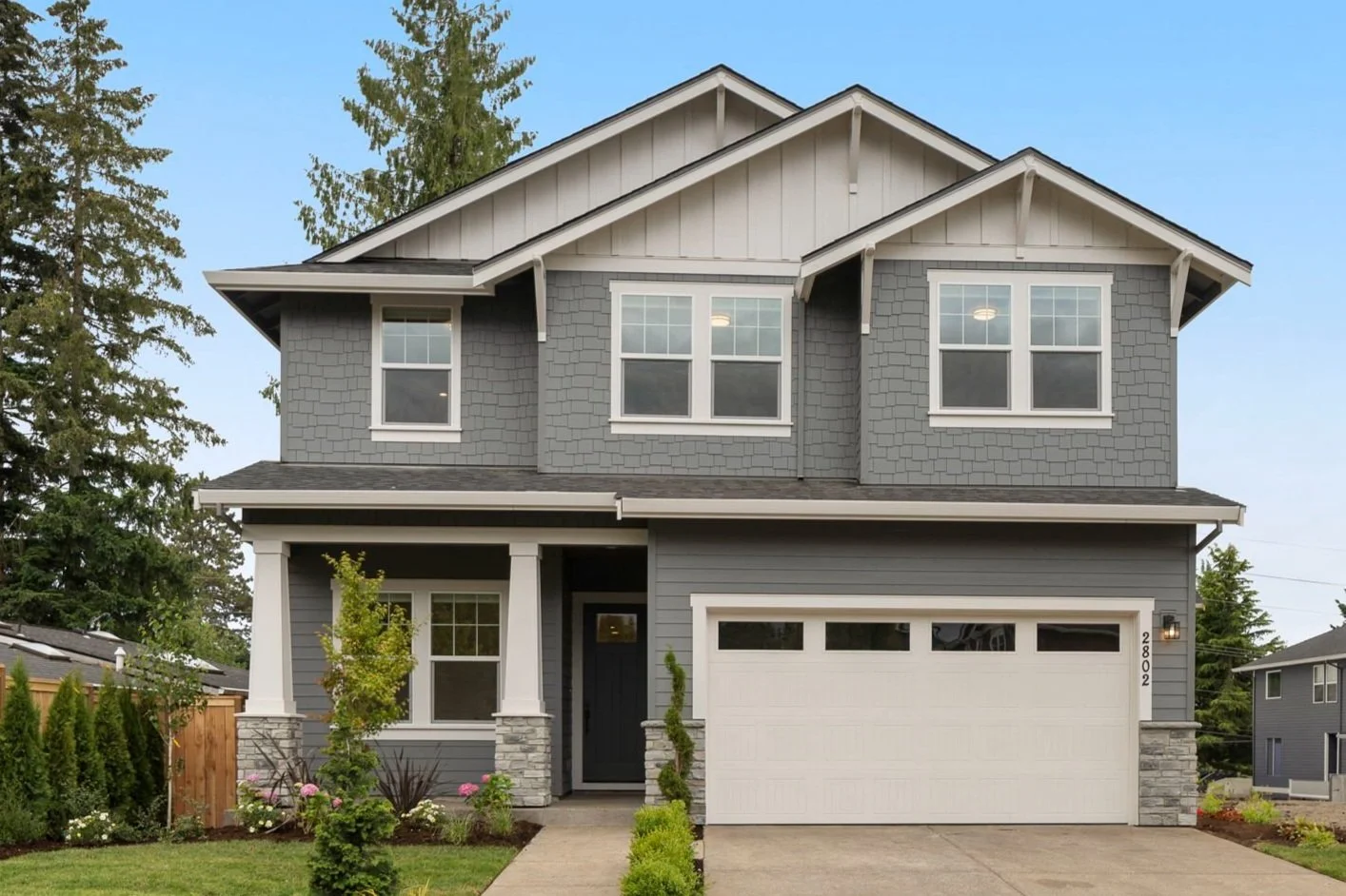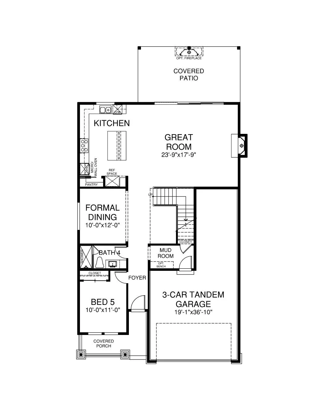 The Pine floor plan is a spacious and inviting layout tailored for modern living. With 5 bedrooms, 4 baths, and a 3-car garage, it offers ample space and convenience for families or guests. The open floor plan concept on the main floor promotes connectivity and social interaction, seamlessly blending the living room, dining area, and kitchen under lofty 10' ceilings. A large outdoor living area with a 15' multi-slide slider and outdoor fireplace extends the living space, creating a harmonious indoor-outdoor flow perfect for gatherings and relaxation. Additionally, the inclusion of a full bedroom and bath on the main floor adds flexibility and convenience for guests or multigenerational living.