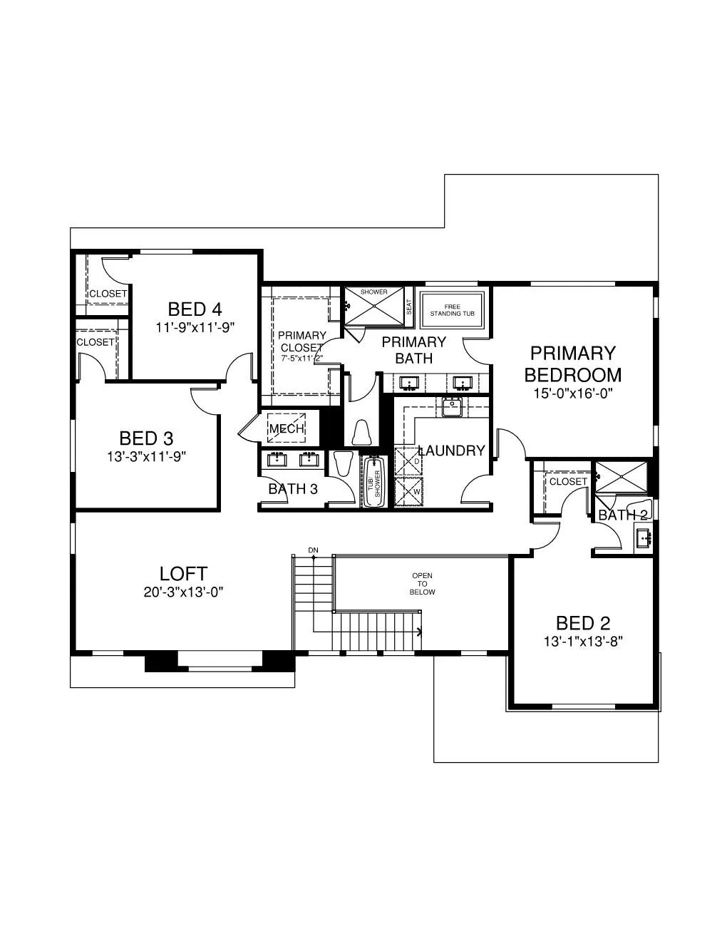 The second floor serves as a private sanctuary, featuring four additional bedrooms and a versatile loft area. The primary suite is a luxurious retreat, complete with a spa-like primary bath boasting a freestanding tub, dual vanities, a walk-in shower, and an expansive primary closet. Secondary bedrooms are thoughtfully designed with ample closet space, ensuring comfort and privacy for every family member. The centrally located laundry room adds everyday convenience, while the loft provides additional living space, perfect for a playroom, media room, or home office.