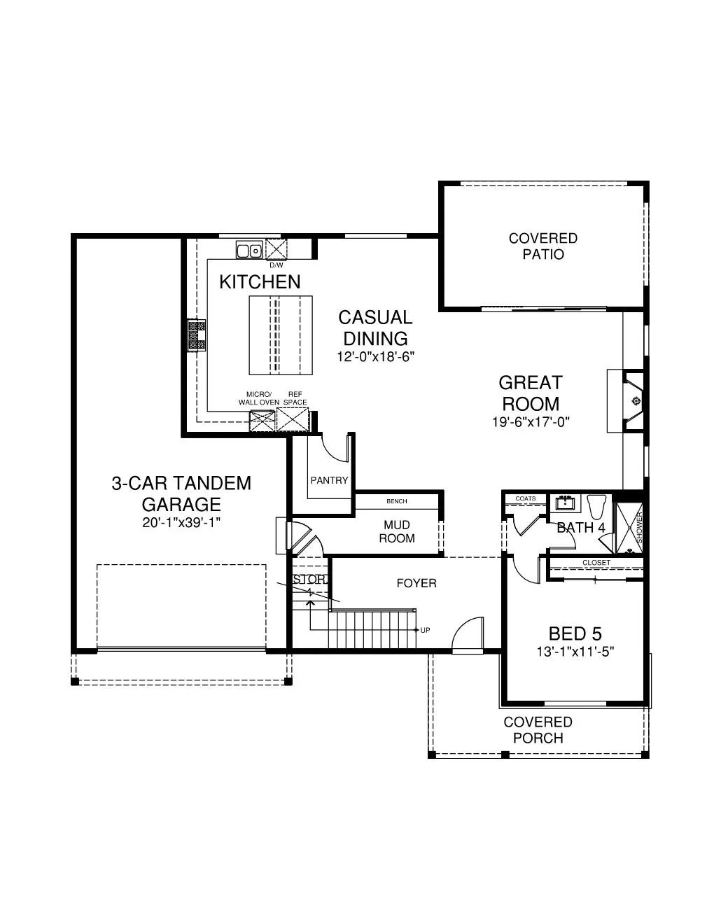 The Willow floor plan offers a perfect blend of modern comfort and functional elegance, thoughtfully designed to enhance both everyday living and entertaining. This spacious two-story home features 5 bedrooms, 4 bathrooms, a 3-car tandem garage, and a covered patio, making it an ideal choice for families seeking both style and convenience. Upon entering, the inviting foyer leads to an open-concept main level designed for seamless living. The heart of the home is the expansive great room, where large windows fill the space with natural light. Flowing effortlessly from the great room, the casual dining area and gourmet kitchen create the perfect setting for family meals and entertaining guests. The kitchen is a chef’s dream, complete with a large island, a walk-in pantry, and designated space for built-in appliances. Extending the living space outdoors, the covered patio offers a serene retreat for relaxation or dining. A main-level bedroom with a full bathroom provides flexibility for guests, multi-generational living, or a private home office.